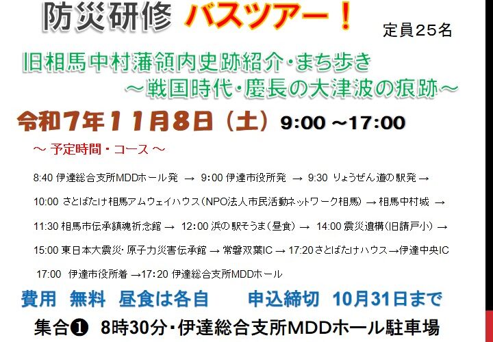 相馬・双葉 震災遺構・歴史文化資産を巡る防災研修バスツアー開催のご案内